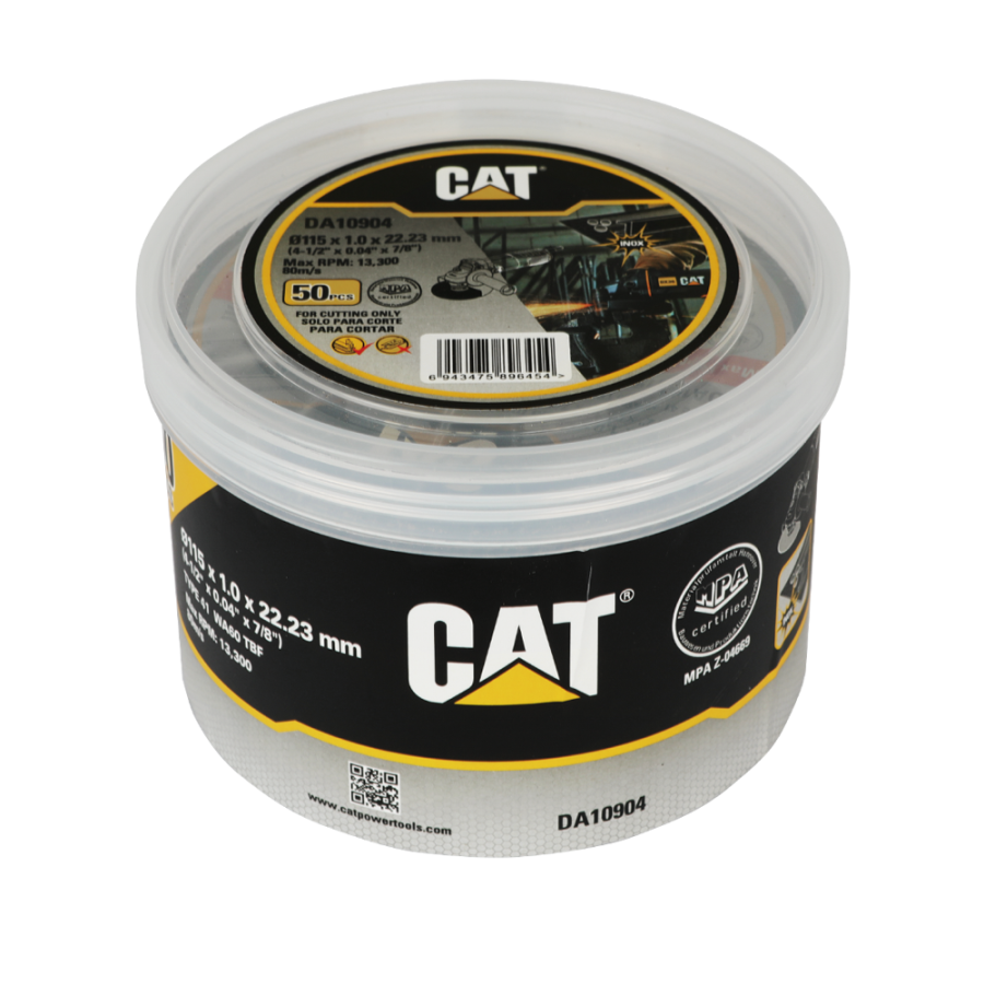 CAT DA10904 підходить для професійного та побутового використання. Завдяки посиленому скловолокном корпусу диск зберігає форму навіть під час інтенсивного різання профілів, труб і листового металу. Мінімальне іскроутворення й плавний хід роблять процес безпечним і комфортним. Комплект 50 дисків з діаметром 115 мм і товщиною 1 мм надає змогу економити час на заміні та гарантує постійну готовність до роботи з металом.