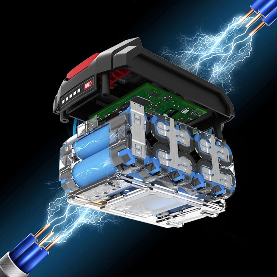 Удобный и компактный корпус весом всего 0,65 кг удивит вас качеством. Слайдерное крепление надежно фиксирует аккумуляторный блок на инструменте. А дополнительный механизм с кнопкой защищает его от неожиданного падения. Со светодиодным индикатором заряда легко контролировать доступное время работы.