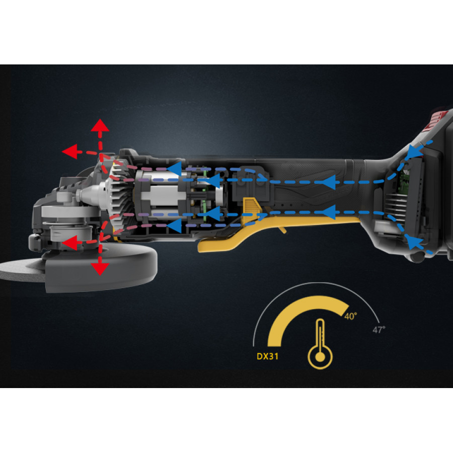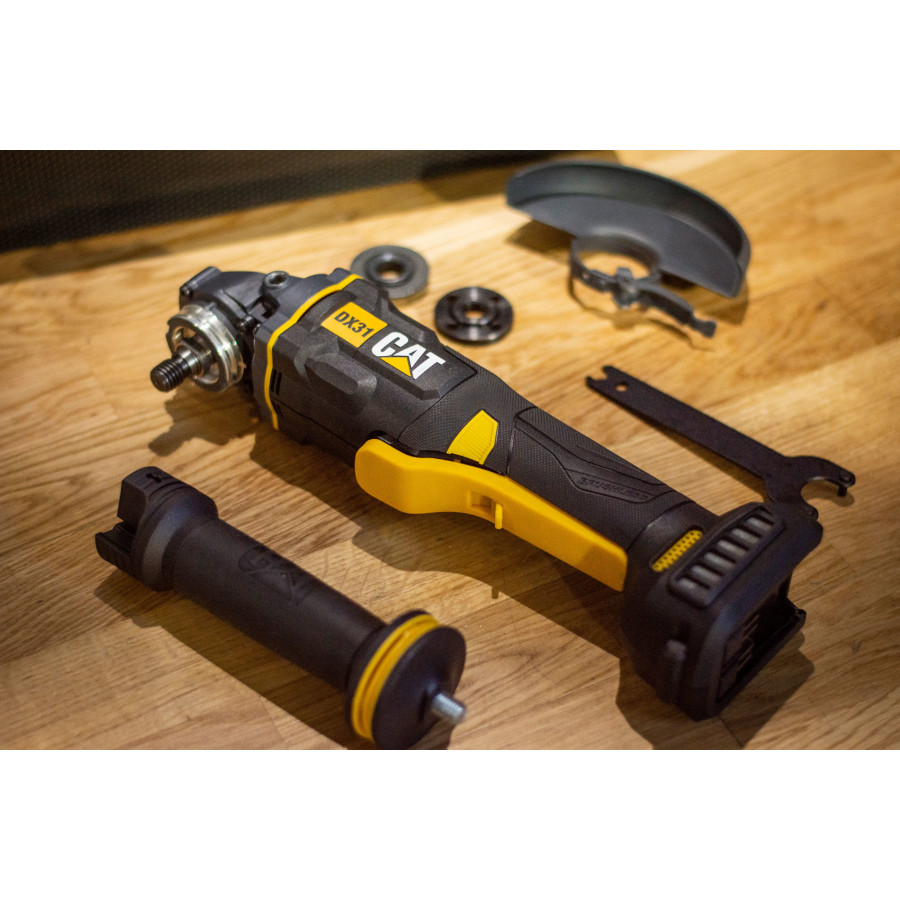 Угловая шлифмашина CAT DX31B создана с максимальной заботой о вашей безопасности и комфорте. Устройство оборудовано защитой от случайного включения и удобным лепестковым механизмом управления. Таким образом можно немедленно прекратить работу инструмента и избежать аварийной ситуации или порчи материала. В случае заклинивания диска срабатывает блокировка шпинделя. Компактный размер угловой шлифмашины обеспечивает беспрепятственный доступ к труднодоступным или неудобным местам. Вы будете меньше уставать во время длительной работы благодаря эргономичному исполнению и легкости устройства. CAT DX31B не комплектуется АКБ и ЗУ, но имеет 3-позиционную дополнительную рукоятку и жесткий защитный кожух с быстрой регулировкой положения.