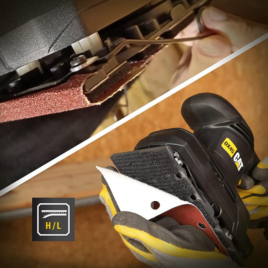 CAT DX45 имеет высокую мощность 6000-11000 об/мин, что позволяет ему эффективно шлифовать и обрабатывать различные поверхности. Он справится с трудными задачами шлифовки и удаления старых материалов. Диаметр орбитального движения составляет 1,6 мм, благодаря чему процесс обработки значительно ускоряется. Шлифовальная бумага легко крепится к платформе с помощью качественной липучки, позволяя вам сосредоточиться на ремонте, не отвлекаясь на смещение бумаги.