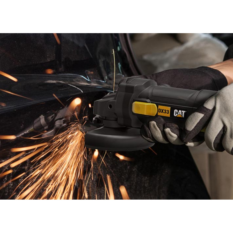 Угловая шлифовальная машина CAT DX33 впечатляет своими функциональными возможностями. Ваша безопасность и комфорт во время работы важны для нас, поэтому инструмент имеет несколько степеней защиты. С помощью легкого переключателя включения/выключения вы быстро активируете или остановите инструмент, чтобы не было лишних движений. Шпиндельный замок позволяет легко менять насадки без риска травмирования. Рукоятка имеет 2 позиции, что позволяет выбрать наиболее удобное положение именно для ваших рук, а контроль и точность работы значительно повышаются. Регулируемая без инструментов защитная крышка добавляет дополнительного комфорта и скорости настройки. Кроме того, улучшенная система вентиляции обеспечивает быстрое охлаждение инструмента для поддержания оптимальной рабочей температуры и продлевает срок службы машины.