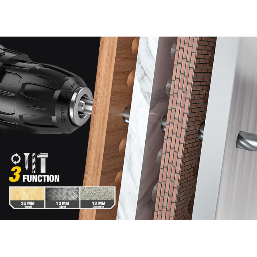 Аккумуляторная ударная дрель CAT DX155 — это сочетание высокой мощности и эффективности. Благодаря 18 В аккумулятору она обеспечивает достаточную энергию для выполнения самых сложных задач без задержек и перерывов. Защита от перегрузок обеспечивает долговечность и надежность инструмента. Никаких внезапных повреждений и максимальная продуктивность на протяжении длительного времени. Ударный режим добавляет универсальности и позволяет легко работать с самыми твердыми материалами, такими как бетон или кирпич.