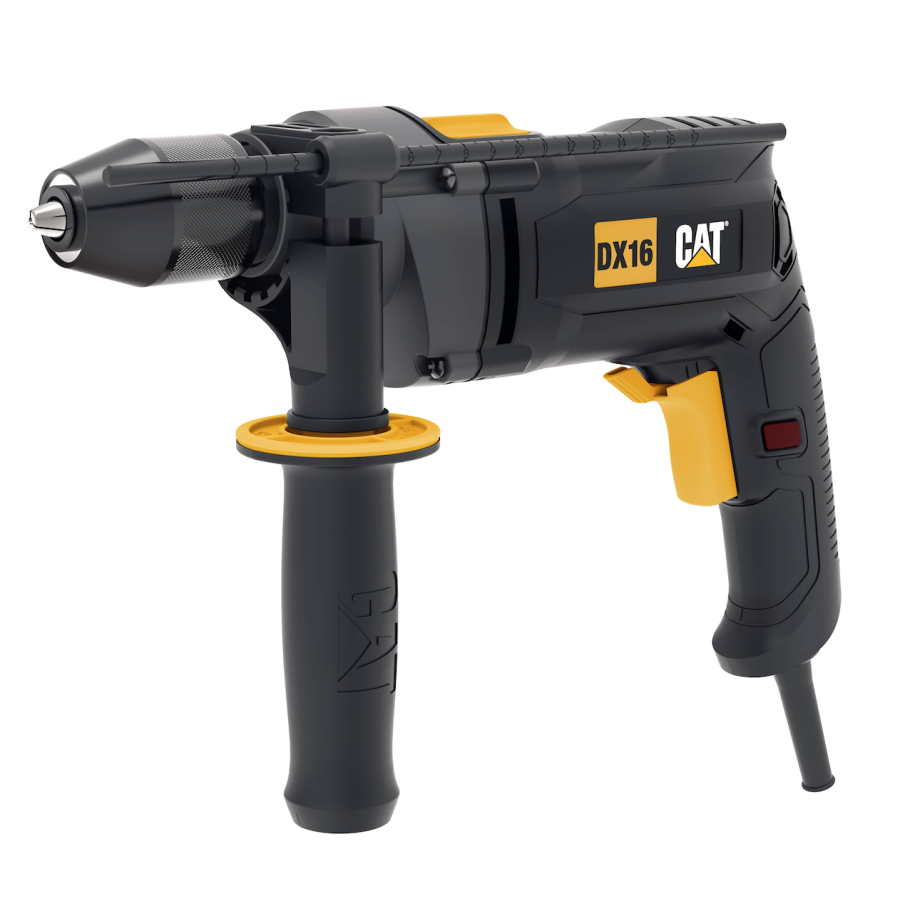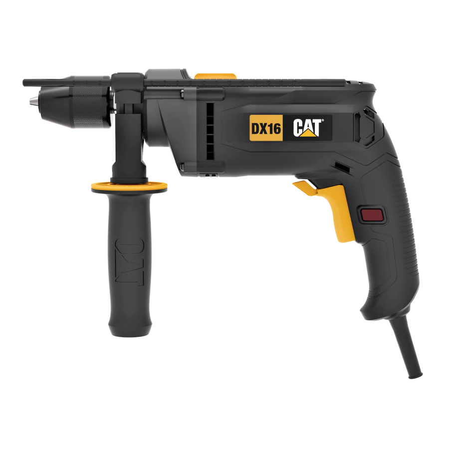 Мощная универсальная ударная дрель CAT DX16 подходит для сверления отверстий в различных материалах, включая дерево, металл и бетон. Благодаря высокой производительности и ударной функции устройство легко и быстро осуществляет работу. Также есть режим безударного сверления и функция реверса.