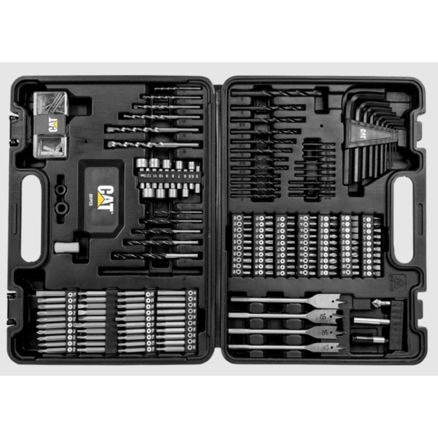 Набор включает широкий спектр сверл и битов, что позволяет вам эффективно выполнять свою работу. Каждый элемент в кейсе изготовлен из высококачественных материалов, что гарантирует долговечность и износостойкость. Инструменты CAT известны своей надежностью и этот набор не исключение, ведь подходит для профессионального использования.