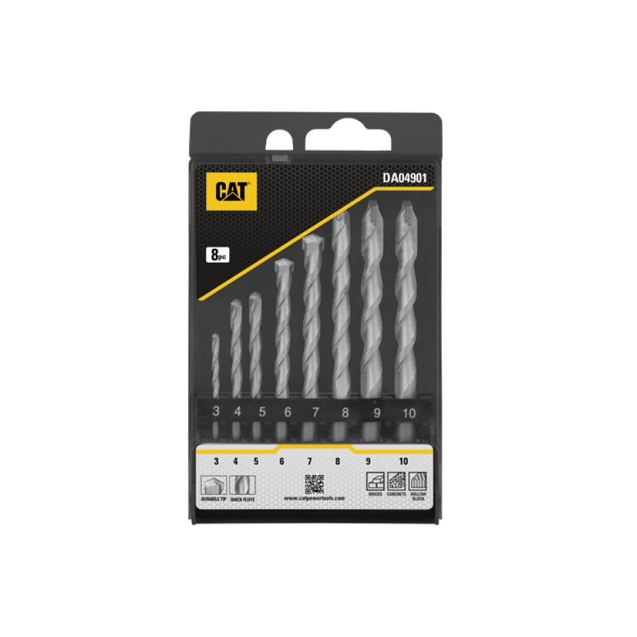 Набор сверл по бетону и камню CAT DA04901, 8 шт. (3, 4, 5, 6, 7, 8, 9, 10 мм)